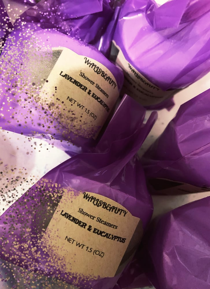 Therapeutic Lavender and Eucalyptus Aromatherapy Shower Steamer . Opens up air ways along with giving you a clean spa experience. It will leave you feeling and smelling fresh and exhilarating!
